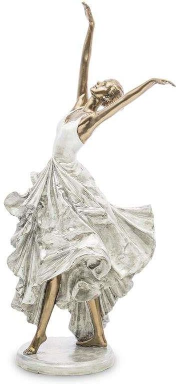 Figurka Kobieta Tancerka Baletnica – Elegancja i Sztuka w Jednym | 129620 Figurka Kobieta Tancerka/Baletnica 129620 to wyjątkowa dekoracja o artystycznym charakterze, inspirowana subtelnym pięknem tańca i harmonią ruchu. Smukła sylwetka, finezyjna poza oraz delikatne wykończenie sprawiają, że ozdoba ta jest idealnym dodatkiem do stylowych wnętrz. Jej kremowo-złota kolorystyka podkreśla elegancję, a duży rozmiar sprawia, że figurka staje się wyrazistym elementem dekoracyjnym. To propozycja dla osób, które cenią piękno, lekkość i artystyczne detale w domowych aranżacjach. Specyfikacja produktu Symbol: 129620 Wymiary: 48,5 x 20 x 12 cm Waga: 1,5 kg Kolor: kremowy, złoty Materiał: wysokiej jakości tworzywo sztuczne Styl: artystyczny, elegancki, nowoczesny Cechy i opis figurki Przedstawia kobietę w dynamicznej, baletowej pozie, pełnej ekspresji i lekkości. Starannie ułożona suknia oraz naturalnie opadające fałdy tworzą efekt ruchu, który nadaje figurce wyjątkową dynamikę. Złote wykończenia na skórze i detalach dodają jej szlachetności i podkreślają elegancki charakter. Wysoki, efektowny kształt sprawia, że dekoracja wyróżnia się w każdym wnętrzu i przyciąga wzrok. Wykonana z trwałego tworzywa sztucznego, które gwarantuje długotrwałe zachowanie estetyki i stabilność. Doskonała jako samodzielna dekoracja lub element większej aranżacji artystycznej. Zastosowanie Idealna dekoracja do salonu, sypialni, przedpokoju lub gabinetu. Świetny dodatek do wnętrz nowoczesnych, klasycznych, glamour czy artystycznych. Efektowna ozdoba do butików, galerii, hoteli, salonów kosmetycznych i przestrzeni komercyjnych. Dobrze prezentuje się na komodzie, konsoli, półce, regale lub stoliku dekoracyjnym. Idealny prezent Piękny upominek dla miłośników tańca, baletu i sztuki. Doskonały prezent na urodziny, imieniny, rocznicę, Walentynki czy parapetówkę. Elegancki i ponadczasowy podarunek, który będzie ozdobą na wiele lat. Dlaczego warto wybrać tę figurkę? Duży, efektowny rozmiar – dekoracja, która dominuje i zdobi przestrzeń. Precyzyjne wykonanie i artystyczny charakter. Uniwersalna, kremowo-złota kolorystyka pasująca do wielu aranżacji. Stabilna i trwała konstrukcja, odpowiednia do domu i przestrzeni usługowych. Wyjątkowy motyw taneczny, dodający wnętrzu lekkości i elegancji.