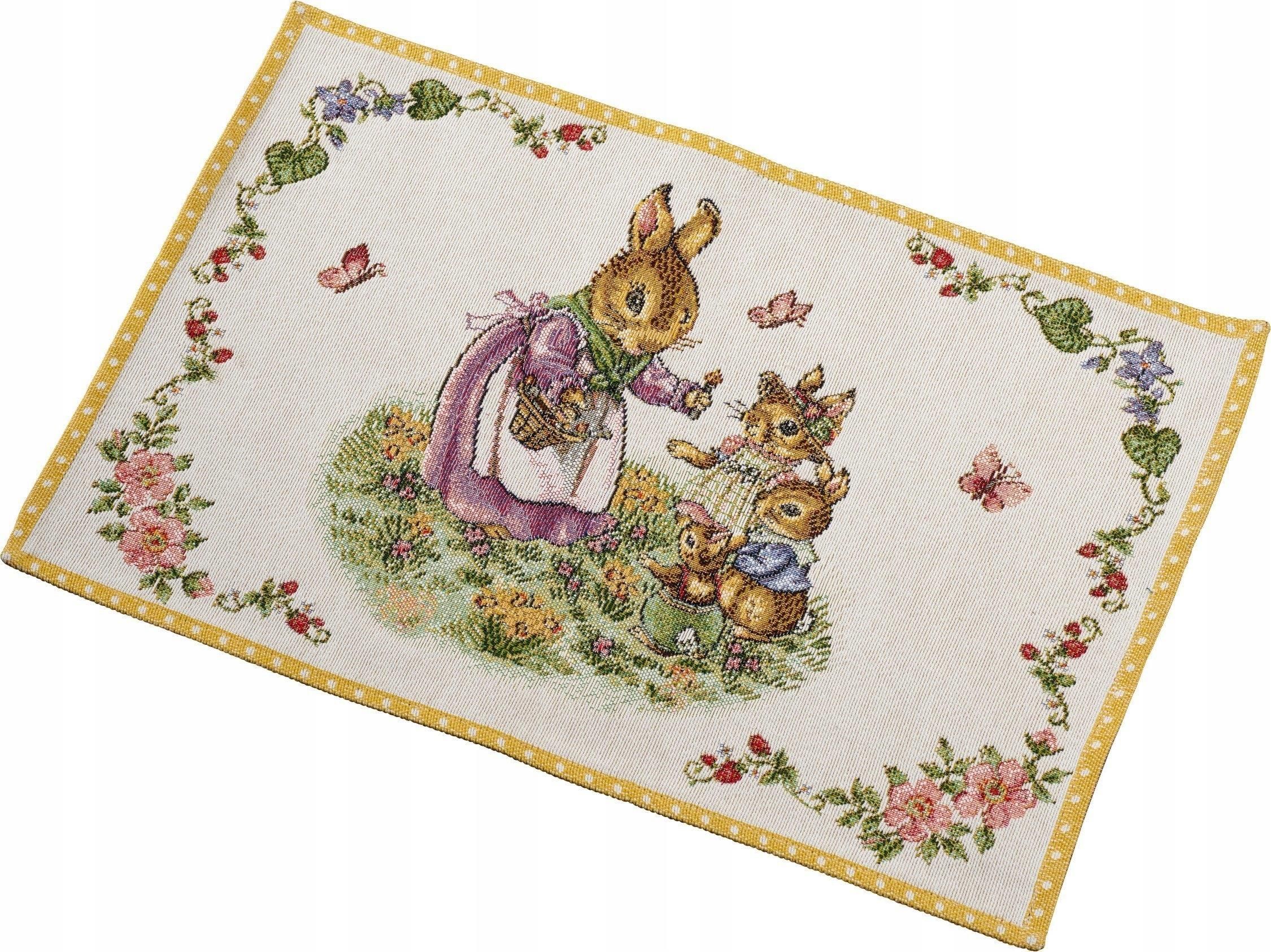 OFERTA WIELKANOCNA JEST LIMITOWANA – ważna tylko do wyczerpania zapasów. Nie czekaj!Jak co roku Święta Wielkanocne muszą być przepełnione radością i kolorem. Kolekcja Spring Fantasy idealnie wpasowuje się w tę wizję. Zastawę stołową zdobią piękne wielkanocne zajączki, bez których nie wyobrażamy sobie Wielkanocy. Wiosenne kwiaty idealnie będą komponowały się z porcelanowymi wazonami. Tegorocznym motywem przewodnim kolekcji Spring Fantasy jest królicza rodzina "Bunny Tales". Jej członkowie: Dziadek Królik Hans, króliczek Max, Anna, Paul i mama Emma, to główni bohaterowie naszych ulubionych naczyń z kolekcji Spring Fantasy, która swoim bogatym asortymentem stanowi idealne uzupełnienie pozostałych kolekcji wielkanocnych marki V&B. Pięknie zdobione misy, świeczniki, wazoniki, zawieszki, figurki wielkanocne, a w tym roku również tekstylia, będą piękną dekorację naszego stołu. Są również idealnym pomysłem na miły upominek! Nowość 2023! Gobelinowa podkładka przedstawiająca uroczą, króliczą rodzinę "Bunny Tales" będzie prawdziwą ozdobą Twojego wielkanocnego stołu. Właściwości: - wymiary: 35 x 50 cm, - materiał: poliester,gobelin - zalecane pranie ręczne, - kolekcja: Spring Fantasy 2023. Współpracujemy z oficjalnym dystrybutorem marki Villeroy & Boch w Polsce. Kupując w naszym sklepie, mają Państwo gwarancję zakupu oryginalnego produktu. Dziękujemy za zaufanie.Nie musisz się również martwić dostawą. Dbamy o bezpieczne zapakowanie towaru. Jeżeli masz jeszcze jakieś pytania - napisz lub zadzwoń! tel. 660 56 57 58 e-mail: bok@kuchniapremium.pl