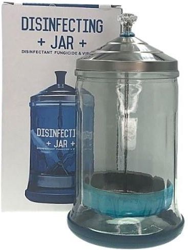 Kultowa słoik ze stali nierdzewnej i formowanego szkła do dezynfekcji instrumentów salonowych. • Idealny do użytku w salonach pielęgnacyjnych i zakładach fryzjerskich • Do dezynfekcji narzędzi do stylizacji włosów, nożyczek, zanurzanych pilników i dłuższych narzędzi do pielęgnacji • Niestandardowe formowane szkło z częściami ze stali nierdzewnej • Dopasowany, samoopróżniający się kosz do pobierania umożliwia zanurzanie i wyjmowanie narzędzi bez wkładania palców do roztworu dezynfekującego • Gumowy pierścień u podstawy zapobiega zsuwaniu się i przechylaniu słoika. • dezynfekuj narzędzia między klientami • Aby zachować skuteczność, preparat dezynfekujący należy zmieniać codziennie. Środek dezynfekujący sprzedawany osobno Pojemność 621ml / 21 fl.oz, wysokość 19 cm, podstawa 10,8 cm średnicy.