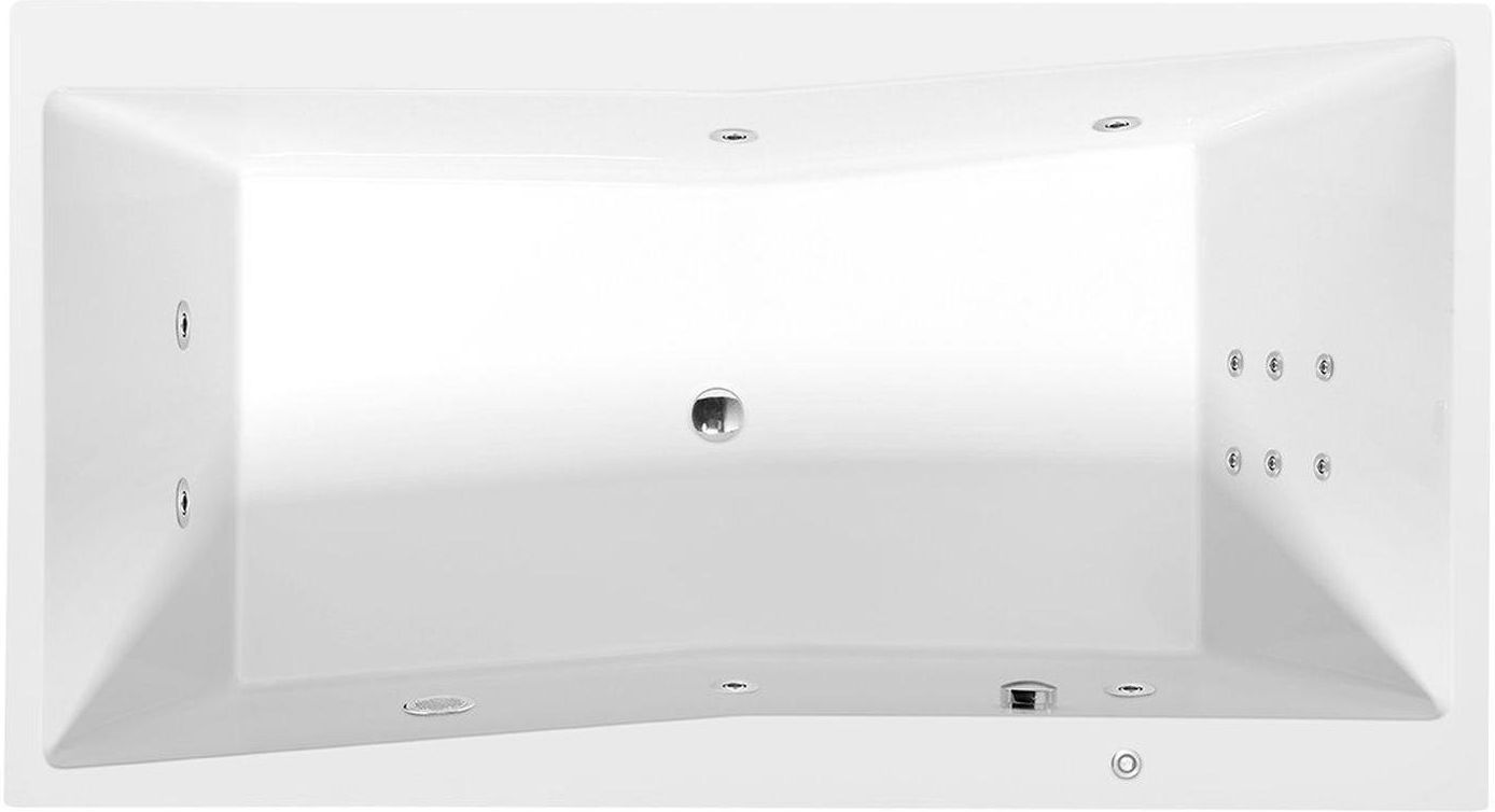 - Dłuższy bok: 180 cm - Krótszy bok: 100 cm - Pojemność: 447 l - Zintegrowana obudowa: nie - Materiał: akrylowa - Odpływ: na środku - Kolor: biały