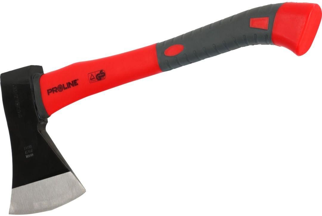 12876 Siekiera z trzonkiem z włókna szklanego 75%, 1600g, Proline Gumowana, pochłaniająca drgania rękojeść TPR Trzonek siekiery antywibracyjny z włókna szklanego 75% powlekany plastikiem Osłona na ostrze Twardość: 52 +/- 2HRC Waga: 1600 g