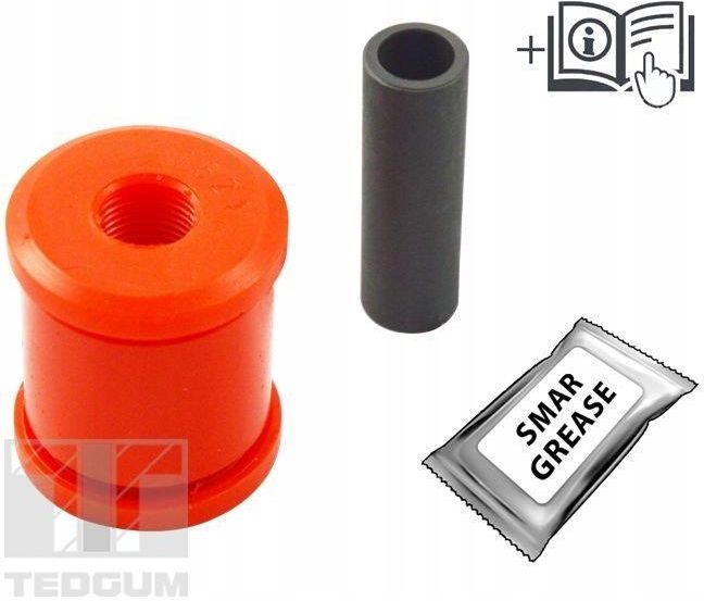 TULEJA WAHACZA TED31923 TEDGUM Łożyskowanie, wahacz Numer katalogowy: TED31923 Producent: TEDGUM UWAGA! Cena dotyczy 1 sztuki Cechy produktu: Strona zabudowy: z przodu Ciężar [kg]: 0.14 wymagana liczba: 2 Kolor: czerwony Materiał: PU (poliuretan) Średnica wewnętrzna [mm]: 12 średnica zewnętrzna …