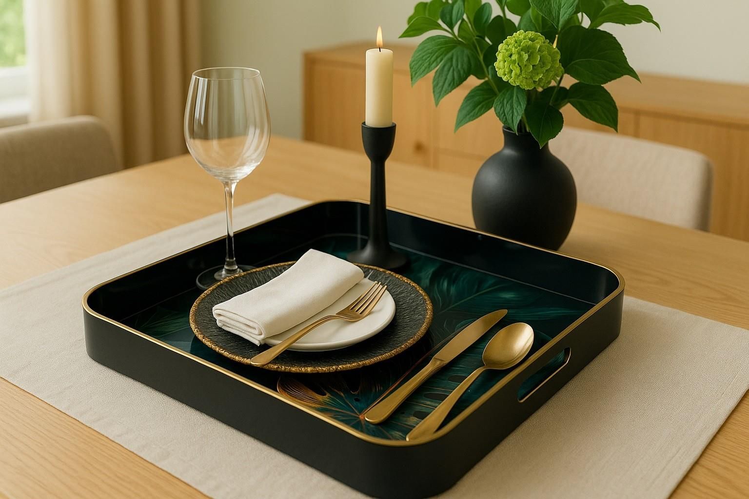 Kwadratowa taca dekoracyjna z motywem liścia, Art-Pol Nowoczesna taca kwadratowa z motywem egzotycznych liści – styl, który zachwyca! Wnieś do swojego wnętrza nutę egzotyki i elegancji dzięki designerskiej tacy marki Art-Pol. Ten modny dodatek w formie kwadratowej tacy z wysokim rantem i dekoracyjnym nadrukiem liści monstery w odcieniach butelkowej zieleni, złota i granatu, to nie tylko funkcjonalny przedmiot, ale również stylowy akcent dekoracyjny zgodny z trendem urban jungle i botanicznych inspiracji. Najważniejsze cechy produktu: Nowoczesny design z nadrukiem liścia monstery – zgodny z trendami wnętrzarskimi. Wysokie obrzeże – zapewnia bezpieczeństwo i stabilność serwowanych elementów. Wykonanie z tworzywa sztucznego – lekkie, trwałe i łatwe do utrzymania w czystości. Dostępna w dwóch rozmiarach: Mniejsza: 35×35×4 cm Duża: 38×38×4,5 cm (drugi wariant znajdziesz w osobnej ofercie) Szerokie zastosowanie – przykłady: Taca śniadaniowa – serwuj kawę, napoje, przekąski w eleganckim stylu. Dekoracja stolika kawowego lub komody – wyeksponuj świece, wazony, figurki lub rośliny doniczkowe. Organizer na kosmetyki lub perfumy – do łazienki, toaletki lub sypialni. Podkład dekoracyjny pod zestawy świec, kadzidełka lub drobiazgi w stylu boho lub urban jungle. Do kuchni i jadalni – jako estetyczna i praktyczna taca serwisowa. Produkt idealnie odnajduje się w stylu: Urban jungle Nowoczesnym glamour Tropikalnym / botanicznym Boho chic Art déco z nutą egzotyki To must-have wśród dodatków wnętrzarskich sezonu – funkcjonalność połączona z modnym wzornictwem. Zdjęcie tytułowe ma charakter poglądowy. Prezentowana aranżacja może zawierać elementy dekoracyjne niewchodzące w skład zestawu. Szczegóły dotyczące zawartości znajdują się w opisie produktu.