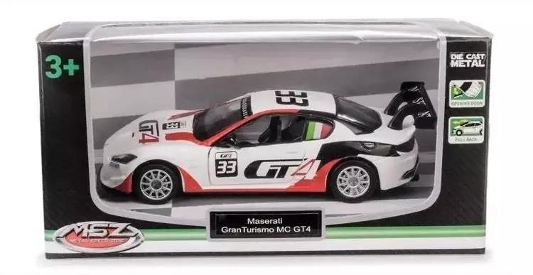 Model samochodu Maserati GranTurismo MC GT4 od MSZ w skali 1:43, w kolorze białym (kod produktu: 67355A) Przedstawiamy biały model samochodu Maserati GranTurismo MC GT4 wytworzony przez MSZ, wykonany w skali 1:43. Model ten oznaczony kodem produktu 67355A gwarantuje ciekawe i realistyczne odwzorowanie pojazdu, dzięki czemu stanowi atrakcyjny przedmiot dla kolekcjonerów modeli samochodowych oraz miłośników marki Maserati. Został zaprojektowany z dbałością o szczegóły, dzięki czemu oddaje wygląd oryginalnego samochodu z imponującą precyzją. Prezentowany model to wyjątkowy dodatek do każdej kolekcji. EAN: 5905422133112