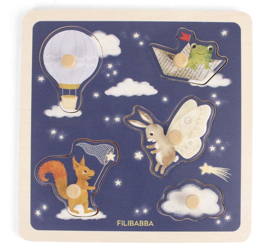 Drewniane puzzle sensoryczne od FILIBABBA – Zabawa pełna odkryć! Wprowadź swoje maluszka w świat dotykowej eksploracji i kreatywnej zabawy z drewnianymi puzzlami sensorycznymi od FILIBABBA. Zaprojektowane z myślą o małych rączkach, te angażujące puzzle zmieniają czas zabawy w sensoryczną przygodę, gdzie każdy element kryje miłą niespodziankę. To coś więcej niż tylko puzzle – to wspaniała podróż przez kształty, faktury i naukę pierwszych umiejętności. Odkrywaj kształty i faktury Puzzle składają się z 5 solidnych elementów, z których każdy skrywa sensoryczną tkaninę dopasowaną do motywu danego elementu. Wytrzymałe uchwyty sprawiają, że małym paluszkom łatwo jest je chwytać, co pomaga rozwijać umiejętności motoryczne oraz wzmacniać chwyt szczypcowy. Dzięki kompaktowym wymiarom 22,5 x 22,5 cm to doskonała zabawka łącząca eksplorację dotykową z zabawą w rozwiązywanie łamigłówek. Idealna dla najmłodszych Te drewniane puzzle są starannie zaprojektowane z myślą o maluszkach powyżej 12 miesięcy, wspierając ich rozwój sensoryczny i motoryczny. To nie tylko zabawka – to doskonały sposób na zachęcenie do nauki poprzez zabawę! Cechy produktu Piękne drewniane puzzle z 5 solidnymi elementami, każdy z sensorycznym materiałem ukrytym pod spodem. Rozmiar: 22,5 cm x 22,5 cm – idealny dla małych dzieci. Wytrzymałe uchwyty zaprojektowane dla małych rączek, ułatwiają chwytanie i manipulację. Wspiera rozwój małej motoryki i rozwój chwytu szczypcowego. Odpowiednie od: 12 miesięcy. Spraw, aby nauka i zabawa stały się niezapomnianą przygodą w życiu Twojego dziecka dzięki drewnianym puzzlom sensorycznym od FILIBABBA – perfekcyjnej zabawce dla małych odkrywców!
