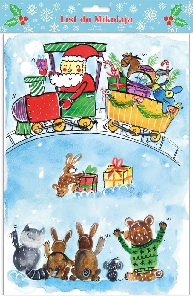 List do Mikołaja MIKOŁAJ Z PREZENTAMI wydrukowany na wysokiej jakości papierze. Produkt składa się z dwóch kartek. Pierwsza kartka do uzupełnienia listu, a druga do namalowania swojego wymarzonego prezentu. Zestaw zawiera: list, strona z grafiką do namalowania prezentu, koperta czerwona …