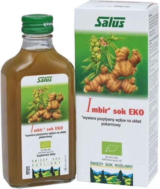 Imbir sok EKO to świeży sok roślinny, który wpływa pozytywnie na prawidłowe funkcjonowanie układu pokarmowego. Produkt wspiera trawienie, a także działa żółciopędnie i rozkurczowo. Imbir sok EKO skutecznie łagodzi dolegliwości takie jak wzdęcia oraz mdłości. Sok polecany jest także osobom chcącym zadbać o swoją odporność i wzmocnić siły witalne. Jest pomocny również w przypadku przeziębień.
