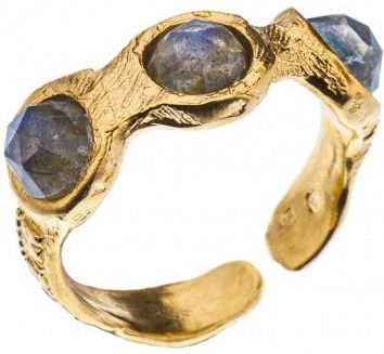 PIERŚCIONEK MOTYLE Botanica MGL5617 MGL5617 Pierścionek srebrny – złocony, próby 925, wykonany ręcznieWykończenie srebra: “królewskie złoto 24K”Kamienie naturalne: labradorytRegulacja szyny: do 1,5 rozmiaruDostępne rozmiary: 9 – 21 (MOŻLIWOŚĆ REGULACJI) Pierścionek posiada gwarancję marki Motyle w postaci srebrnego logo. MGL5617 Świat roślin to inspirujące, odwieczne źródło tworzenia. Obserwacja tego procesu natchnęła projektantkę do stworzenia kolekcji biżuterii Botanica, której motywem przewodnim jest kolor. Pobudza on nasze zmysły a jego odbiór zaciera granicę między efektem wizualnym a zapachowym. Intensywność koloru instynktownie pobudza nas do chłonięcia zapachów tak, jak kiedy patrzymy na kolorowy kwiat czy owoc.Srebrny pierścionek wykonany został ręcznie z największą dbałością o każdy szczegół w naszej pracowni biżuterii Motyle. Wygodna, regulowana obrączka tworzy jedność z wkomponowanymi naturalnymi kamieniami. Trzy okrągłe, kolorowe kamienie oprawione w organiczną oprawę tworzą kobiecą, energetyczną kompozycję. Artystyczny pierścionek idealnie komponuje się z subtelnymi kolczykami na sztyft z tej samej kolekcji.Odcienie naturalnych kamieni to indywidualne kompozycje. Każdy egzemplarz może delikatnie różnić się od tego który przedstawiony jest na zdjęciu. MGL5617
