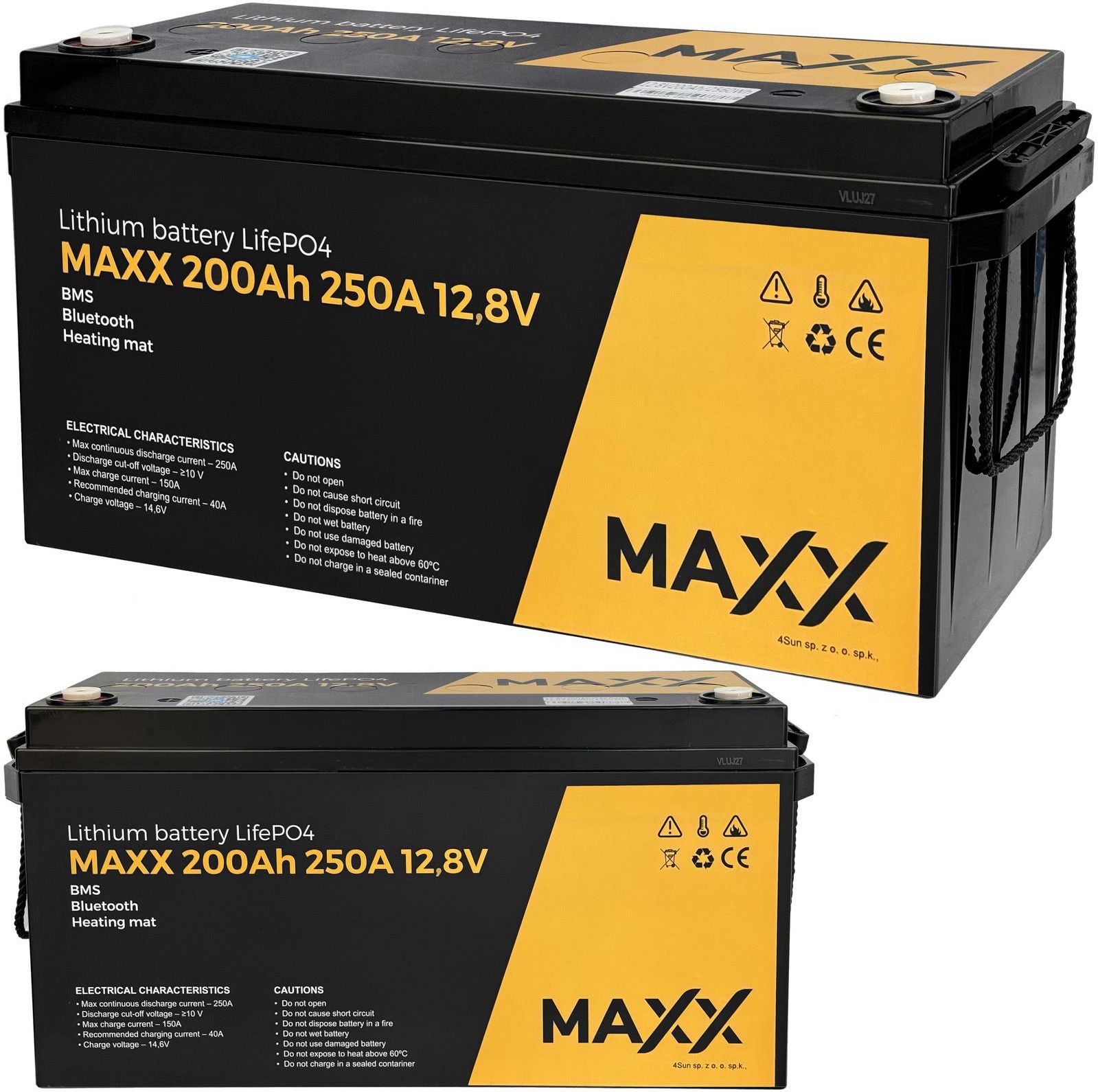 AKUMULATOR LiFePO4 BMS DO ŁODZI KAMPERA PANELI MATA GRZEWCZA 200Ah 12V 250A 4SUN AKUMULATOR LiFePO4 200Ah 250A 12V BMS + MATA GRZEWCZA 4SUN LEKKI WAGA 20 KG Akumulator o napięciu nominalnym 12.8V, pojemności 200Ah i prądzie rozładowania do 250A. Akumulator LiFePO4 to idealne rozwiązanie dla Twoich potrzeb. Dzięki długiej żywotności do 6000 cykli, wysokiej gęstości energii dla większej mocy w mniejszym rozmiarze oraz bezpieczniejszej i stabilnej konstrukcji wykonanej z połączenia żelaza, litu i fosforanu, bateria LiFePO4 jest idealnym wyborem dla wielu zastosowań. Dodatkowo, bateria LiFePO4 oferuje możliwość szybkiego ładowania, szeroki zakres temperatur pracy, niskie samorozładowanie i jest przyjazna dla środowiska, nie zawiera metali ciężkich. Długa żywotność Akumulatory LiFePO4 mają znacznie dłuższą żywotność niż tradycyjne akumulatory kwasowo-ołowiowe lub litowo-jonowe. Ich trwałość wynosi do 6000 cykli. Wysoka gęstość energii Akumulatory LiFePO4 mają wysoką gęstość energii, co oznacza, że mogą przechowywać więcej energii w mniejszej przestrzeni. Dzięki temu idealnie nadają się do zastosowań, w których przestrzeń jest ograniczona. Szybkie ładowanie Akumulatory LiFePO4 mogą być ładowane bardzo szybko, co czyni je idealnymi do zastosowań, w których konieczny jest szybki czas ładowania. Szeroki zakres temperatur pracy Akumulatory LiFePO4 zostały zaprojektowane do pracy w szerokim zakresie temperatur, od -20°C do 60°C. Niskie samorozładowanie Akumulatory LiFePO4 mają bardzo niski wskaźnik samorozładowania, co oznacza, że będą utrzymywać swój ładunek przez długi czas, gdy nie będą używane. Przyjazne dla środowiska Akumulatory LiFePO4 są przyjazne dla środowiska i są wolne od metali ciężkich, takich jak ołów i kadm, które mogą być toksyczne dla środowiska.