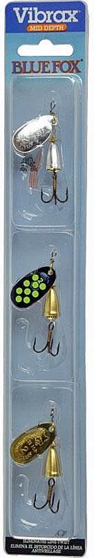 Blue Fox Kit Vibrax - Do wyboru 5 różnych zestawów - 3 błystki na zestaw - 2 zestawy specjalnie przeznaczone na pstrąga (trout) - Wielkość 1 – 3 - Blacha mosiężna - Jasne wykończenie - Oś ze stali nierdzewnej - Wyposażone w ostre jak brzytwa kotwiczki - Wibracje dźwiękowe aktywują drapieżniki - …