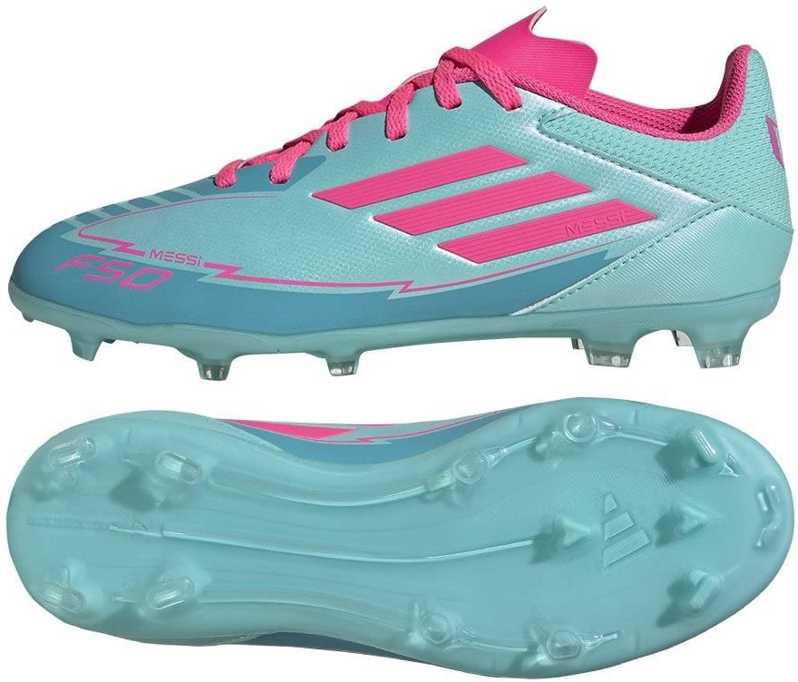 Buty piłkarskie dziecięce korki adidas F50 League Messi FG/MG Jr IH0931 Model: IH0931 Kolor: niebieski Materiał Przeznaczenie: naturalna i sztuczna trawa - FG/AG Buty piłkarskie dziecięce korki adidas F50 League Messi FG/MG Jr IH0931 Buty F50 wykonane częściowo z materiałów pochodzących z …
