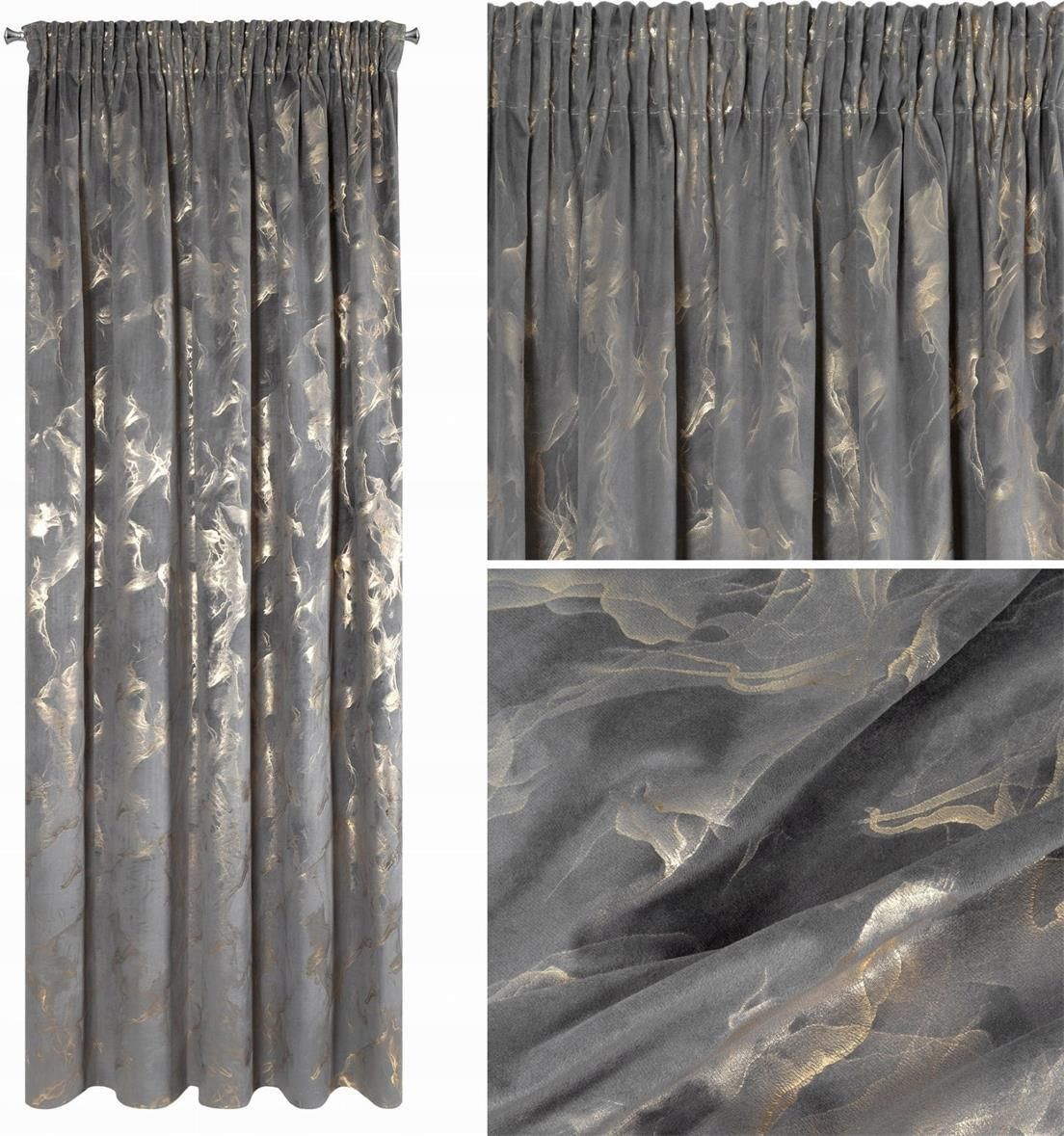 Eurofirany Zasłona Na Taśmie Welwetowa 140X270 Naira Grafit+Złoty Haczyki Supraśl