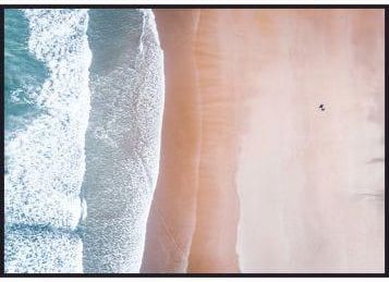 Ilustracja na ścianę z widokiem na plażę z lotu ptaka Zaskakujące ujęcie plaży nad oceanem, która jest przedstawiona z dużej wysokości. Rzadkim widokiem są puste miejsca do plażowania. Tym razem na fotografii główną rolę ogrywają żywioły. Piasek układający się w ciekawe pasy, które są pamiątką po falach wkradających się na ląd. Oraz spienione fale oceanu, które tworzą niezwykle piękny obraz, jaki można podziwiać godzinami. Samotnym bohaterem plakatu jest trudno zauważalny surfer, spacerujący z deską po plaży. Przedstawiony z lotu ptaka z dużej odległości, przypomina raczej czarną plamkę, która przykuwa uwagę dopiero po dłuższej chwili. Piasek i ocean na delikatnym plakacie Subtelne, pastelowe barwy tej ściennej ilustracji z brzegiem oceanu koją i utulają. Przywodzą na myśl wolność, relaks i ciepło, które promienieje na każde wnętrze, w jakim znajdzie się nasz poster. Odcienie błękitu i rudości natury sprawdzą się jako element wystroju pomieszczeń wyposażonych w naturalne meble i dodatki. Mogą to być salon, sypialnia, przedpokój, kuchnia, a nawet gabinet. Parametry techniczne: Plakat jest drukowany na satynowym papierze, powlekanym wielowarstwowo o gramaturze 200 g z wykończeniem matowym. Charakteryzuje go bardzo dobre odwzorowanie kolorów oraz równomierne i jednolite krycie. Dzięki tym właściwościom, plakat przez długi czas będzie cieszył oko obserwatorów. Do plakatu nie jest dołączona ramka. Wizualizacje są tylko prezentacją projektu, mogą nie odzwierciedlać rzeczywistego rozmiaru, przed dodaniem do koszyka, prosimy o sprawdzenie wymiaru. Pamiętaj również, że obraz który widzisz, jest w palecie RGB, technologia druku CMYK, zatem mogą nastąpić różnice w kolorze, są one zazwyczaj subtelne.