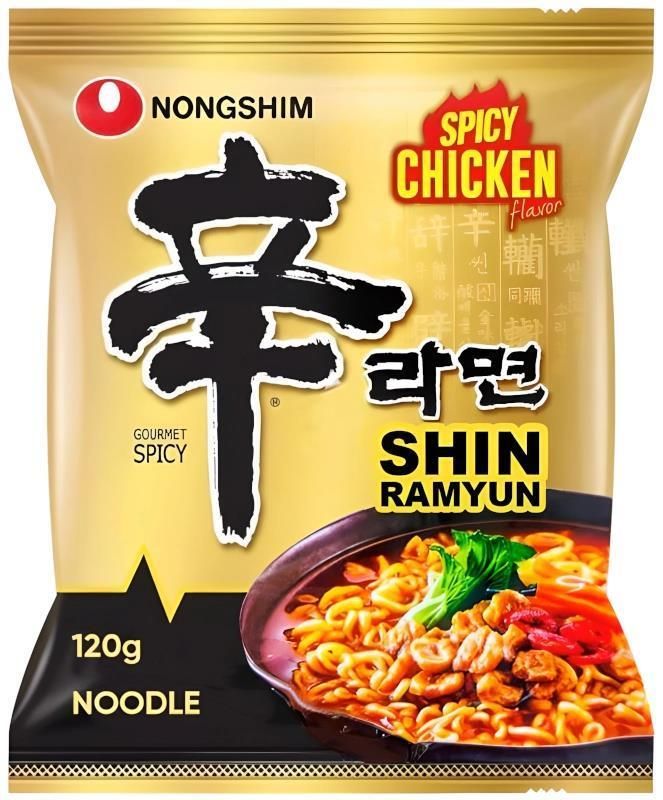 Nowa odsłona z linii kultowych koreańskich dań instant już zawitała na nasze półki! Shin Ramyun Spicy Chicken z pewnością przykuwa wzrok lśniącym, złocistym opakowaniem, które od razu przywodzi nam na myśl gorący, pokrzepiający rosół z kury. W środku znajdziemy oczywiście obowiązkowy bloczek zakręconego, pszennego makaronu, saszetkę z aromatyczną przyprawą oraz paczuszkę dodatków. W niecałe 5 minut danie jest już gotowe, odkrywając przed nami wszystkie smakowite sekrety. Jedwabiście gładkie, sprężyste fale klasycznego makaronu Nongshim zanurzone w lekkim, a jednocześnie esencjonalnym bulionie, który wita nas znajomą kompozycją czerwonej papryki, sosu sojowego, czosnku i pieprzu, połączone ze swoiskim aromatem bulionu drobiowego to doświadczenie, które z pewnością uraduje niejednego wielbiciela dobrych ramyunów. Wyraziście pikantna zupa okraszona mieszanką idealnie dobranych dodatków, takich jak kapusta bok choy, czerwona papryka i teksturowane białko roślinne gwarantuje satysfakcjonujące wrażenia smakowe i z pewnością zaspokoi apetyt na azjatyckie przysmaki. Poziom ostrości zbliżony jest do oryginalnej wersji Shin Ramyun, przypadając do gustu w szczególności amatorom potraw z żarem. :) Sposób przygotowania Zagotować 500-550 ml wody. Do wrzątku wrzucić makaron oraz zawartość saszetek z przyprawami. Gotować przez 4½ minuty na średnim ogniu, na koniec dobrze zamieszać i podawać na gorąco. Smacznego! Ostrzeżenie o alergenach - Produkt zawiera gluten pszenny, soję i seler. Produkt może zawierać: jęczmień, skorupiaki, jaja, ryby, orzeszki ziemne, mleko, gorczyca, sezam i mięczaki. Kraj pochodzenia: Korea Południowa Pełny skład Makaron 89%: mąka pszenna, skrobia ziemniaczana, olej palmowy, sól, regulatory kwasowości: E501, E500,339; przyprawy (ekstrakt drożdżowy, soja, czosnek), przeciwutleniacz: E306; emulgator: E322 (Zawiera soję); barwnik: E101 Zupa w proszku 9%: przyprawy (maltodekstryna, hydrolizowana przyprawa roślinna), białko sojowe, ekstrakt drożdżowy, sól, olej palmowy, aromat kurczaka, kolendra, seler), sól, przyprawy (pieprz czarny, maltodekstryna, czerwona papryka chili, mąka kukurydziana), wzmacniacze smaku: E621, 627, E631, cukier, skrobia ziemniaczana, glukoza, pietruszka, substancja przeciwzbrylająca: E551 Suszone warzywa Mix 2%: białko roślinne (soja, gluten pszenny), marchew, pakchoi, czerwona papryka chili