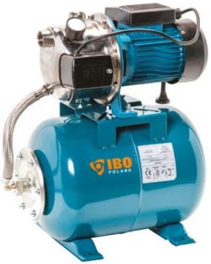 IBO AJ 50/60 ZESTAW HYDROFOROWY NA ZBIORNIKU 24L Zestaw hydroforowy to sprawdzone rozwiązanie automatycznego zasiania w wodę gospodarstw domowych. W skład zestawu wchodzą: • pompa, • zbiornik przeponowy, • wyłącznik ciśnieniowy, • manometr, • wyjście tłoczne pięciodrożne • wąż antywibracyjny z kolanem POMPA HYDROFOROWA AJ 50/60 Jednostopniowa, samossąca, odśrodkowa pompa powierzchniowa, wyposażona w układ podnoszący zdolność zasysania dzięki zastosowaniu tuby Venturiego, przeznaczona do pompowania czystej, zimnej wody z własnych ujęć oraz podnoszenia ciśnienia. Korpus i wał pompy w części mającej kontakt z wodą zostały wykonane ze stali nierdzewnej (wykonanie INOX). Pompa posiada przewód zasilający zakończony wtyczką. Silnik pompy został wyposażony w zabezpieczenie termiczne. ZASTOSOWANIE: Zaopatrywanie w wodę domów, domków letniskowych, działek i ogródków. W połączeniu ze zbiornikami przeponowymi służą dla potrzeb budownictwa jedno - i wielorodzinnego, w przemyśle oraz przy nawodnieniach. Warunki pracy: • Maksymalna temperatura cieczy 400 C • Maksymalna temperatura otoczenia 400 C • Klasa izolacji B • Tryb pracy – ciągły • Bezpieczeństwo – IP44 Materiały: • Obudowa: stal nierdzewna AISI 304 • Wał i rotor: stal nierdzewna AISI 304 • Wirnik: noryl (stal nierdzewna AISI 304) • Konsola: żeliwo • Międzyściana: stal nierdzewna AISI 304 • Dyfuzor/kierownica: noryl • Dławica mechaniczna: ceramika/grafit/NBR • Prędkość obrotowa silnika: 2850RMP ------------------------------------------------------------------------------------------------------------------------------------------------------ ZBIORNIK PRZEPONOWY POZIOMY 24L Naczynia przeponowe IBO przeznaczone są do stabilizacji ciśnienia wody oraz zwiększenia czynnej objętości instalacji wodociągowej. Stosowanie do współpracy z pompami o parametrach odpowiadających parametrom zbiornika. Zbiorniki zostały wykonane z grubej stali węglowej i pokryte specjalnym lakierem przeciwdziałającym korozji. Wewnątrz zbiorników znajdują się gumowe przepony EPDM tworząc membranę między wodą znajdującą w jej wnętrzu a płaszczem zewnętrznym zbiornika. Pomiędzy membraną a obudową zbiornika znajduję się sprężone powietrze które pod ciśnieniem uwalnia wodę ze zbiornika. Przyłącze: 1 " Temperatura robocza: 0-60 °C Max. testowane ciśnienie PT (bar): 8 Ciśnienie wstępne (bar): 1,7 +/- 10% Wymiar D (mm): 290 Wymiar H (mm): 440
