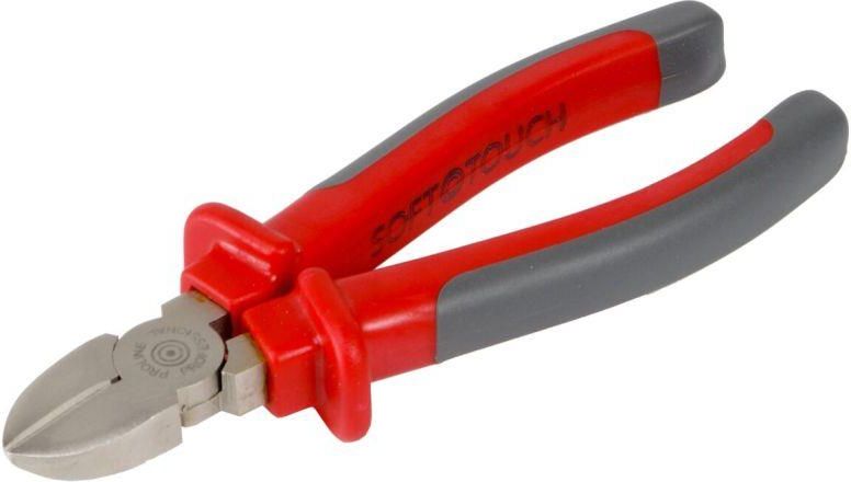 Szczypce Boczne 160Mm Profesjonalne "Soft Touch" Proline Szczypce boczne PROLINE o długości 160 mm. Wykonane z hartowanej stali, dodatkowo powierzchnie tnące hartowane indukcyjnie. Ergonomiczne uchwyty pokryte antypoślizgowym materiałem zapewniają wygodę i bezpieczeństwo podczas pracy. Produkt jest doskonale dopasowany do kształtu dłoni. Kute z wysokogatunkowej stali narzędziowej Satynowane Dwukompozytowa antypoślizgowa rękojeść TPR Rozmiar: 160 mm