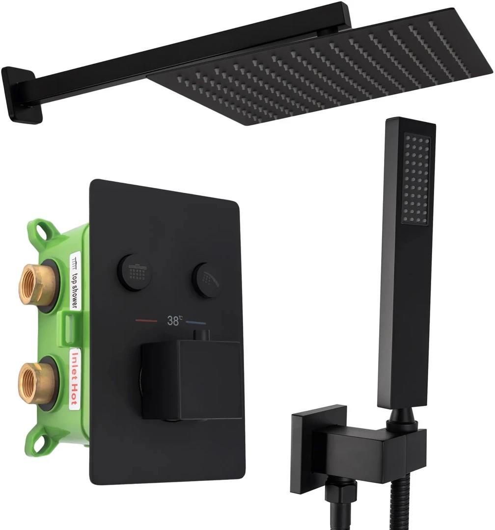 Zestaw Natryskowy podtynkowy FENIX DAVIS BLACK + BOX Typ: Prysznicowy Montaż: Podtynkowy Głowica: Termostatyczna Materiał: Stal nierdzewna Wykończenie: Czarne matowe Deszczownica: Slim 30 x 30 cm Grubość deszczownicy: 5 mm Długość ramienia: 40 cm Grubość maskownicy baterii: 2 mm Długość węża: 150 …