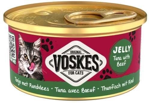 Najważniejsze zalety Tuńczyk (51%) – lekko strawny, bogaty w niezbędne kwasy tłuszczowe wspierające zdrową, lśniącą sierść oraz kondycję skóry. ✅ Wołowina (4,7%) – źródło wysokiej jakości białka, które wspomaga rozwój mięśni i ogólną witalność zwierzęcia. ✅ Naturalne składniki gotowane na parze – proces parowania pozwala zachować pełnię wartości odżywczych oraz naturalny aromat mięsa. ✅ Ręczne przygotowanie – czyszczenie, filetowanie tuńczyka, napełnianie puszek i dodawanie składników odbywa się manualnie, co gwarantuje najwyższą jakość. ✅ Delikatna galaretka roślinna (0,75%) – nadaje karmie apetyczną konsystencję, która jest bardzo chętnie akceptowana przez koty. ✅ Zawiera ryż (1,5%) – jako źródło łatwo przyswajalnych węglowodanów wspierających prawidłową pracę układu pokarmowego. Voskes Jelly Tuna with Beef – Tuńczyk z wołowiną w galaretce | 85 g Wyjątkowa mokra karma w galaretce, łącząca smak delikatnego tuńczyka i soczystej wołowiny. To prawdziwa uczta dla każdego kota, który ceni sobie wyrafinowane smaki i naturalne składniki. Skład: Tuńczyk 51%, wołowina 4,7%, ryż 1,5%, żelatyna roślinna 0,75%. Dostępna pojemność: 85 g