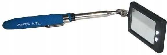 TELESKOPOWE LUSTERKO INSPEKCYJNE LED ASTA A-TIL Lustro kontrolne może być ustawione pod dowolnym kątem. dwie diody LED obsługiwane są przez prosty włącznik ON/OFF lustro pozostaje w dowolnej ustalonej pozycji, przydatne do patrzenia za przedmioty lub zza rogu antypoślizgowy uchwyt ze stali …