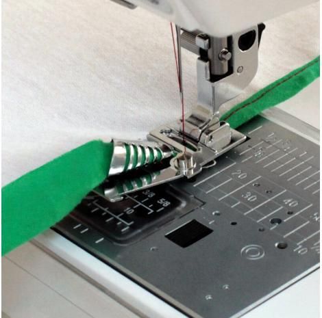 Umożliwia wykończenie krawędzi materiału estetycznie lamówką o szerokości dokładnie 5,5 mm. Sprawdzi się ona przy doszywaniu lamówki zaprasowanej (o szerokości 10-14 mm) lub niezaprasowanej (o szerokości ok 25 mm), dając za każdym razem profesjonalny efekt wizualny. Lamownik umożliwia przyszycie …