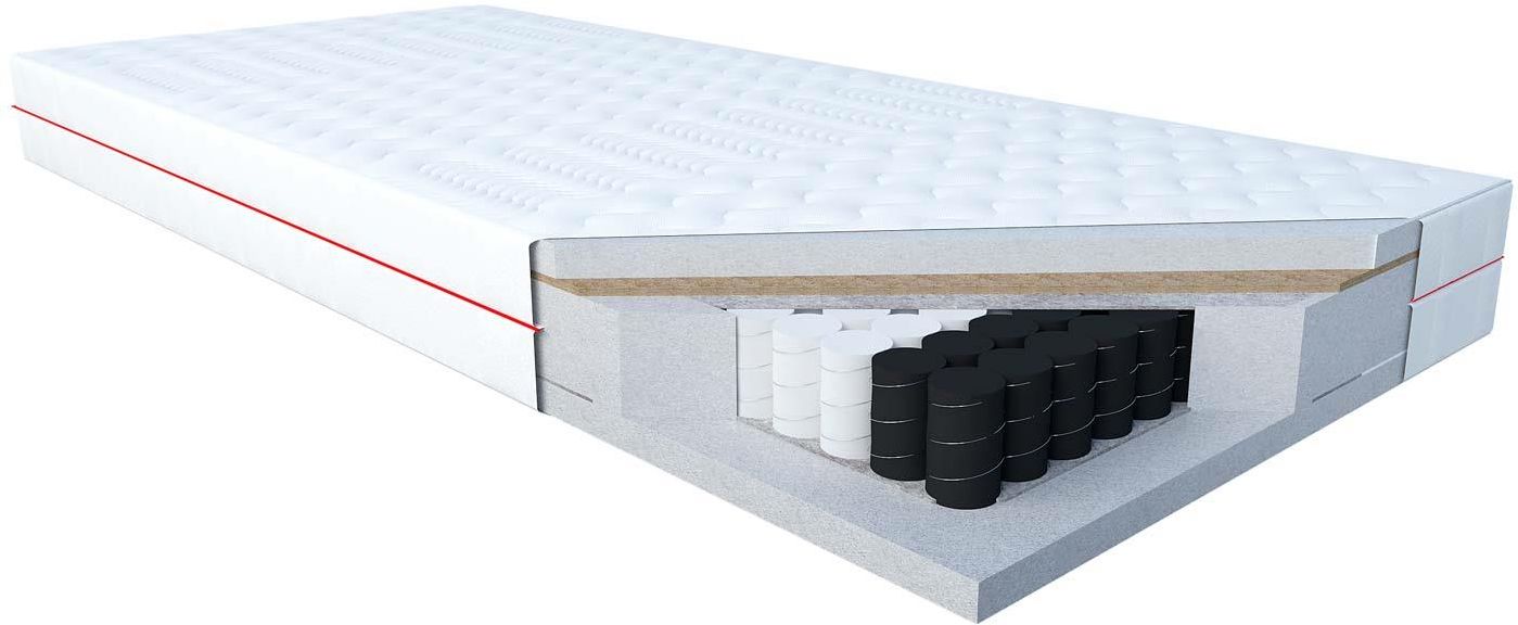 Janpol Delia 80x200. Materac Delia składa się z: pianki oraz sprężyny kieszeniowej oraz warstwy kokosu. Zastosowanie danego połączenia jest gwarancją na wysoki komfort wypoczynku. Sprężyny ułożone zgodnie z siedmioma strefami twardości. Pracują one niezależnie oraz podpierają ciało dokładnie w miejscach nacisku. Miękka pianka uzupełnia obustronnie sprężyny.  Zadaniem pianki jest wspomaganie a ich punktowego działania i zwiększenie odczucia komfortu. Płyta kokosowa jest umieszczona pod pianką , pozwala na wzmocnienie tej części i uzyskanie stabilniejszego, jak również twardszego wsparcia. POKROWCE MATERACA DELIA Smart Pokrowiec wykonany z dzianiny o zróżnicowanej sztywności materiałów, niezwykle miękki dla skóry. Materiał bardzo dobrze dopasowuje się do wkładu. Odpowiednie pikowanie wspomaga działanie strefowości materaca, a do tego zachowuje pierwotny kształt nawet po wielokrotnym praniu. Można go prać w domowych warunkach w temperaturze 60°C. Materiał posiada certyfikat OEKO-TEX Standard 100. Pokrowiec występuje w wersji pikowanej oraz niepikowanej. Silver Protect Niezwykle miękki, dzianinowy pokrowiec wykonany z wysokiej jakości materiałów. Wykazuje doskonałą ochronę antyalergiczną, zapobiega namnażaniu się bakterii oraz nie elektryzuje się a do tego niweluje nieprzyjemne zapachy. Struktura pokrowca została wzbogacona o powłokę zawierającą srebro. Pokrowiec można prać w pralce w temperaturze do 40°C. Nie traci on swoich właściwości nawet po wielokrotnym praniu. Materiał posiada certyfikat OEKO-TEX Standard 100. NAJWAŻNIEJSZE CECHY PRODUKTU Wysokość – 23 cm (Smart, Silver Protect) Twardość – materac średni Wypełnienie – pianka poliuretanowa, przekładka filcowa, przekładka kokosowa, sprężyny kieszeniowe Dwa pokrowce do wyboru pralne do 60°C Wyposażony w zamek rozdzielczy Posiada siedem zróżnicowanych stref twardości Gwarancja producenta 5 lat KRÓLEWSKA SKALA – JAKĄ TWARDOŚĆ PREFERUJESZ? DLA KOGO JEST PRZEZNACZONY MATERAC DELIA? par dla osób z bólem kręgosłupa