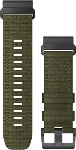 Nylonowy pasek w zielonym kolorze o szerokości 26mm i szybkim systemem mocowania Garmin QuickFit. Zestaw kompatybilny z serią zegarków Garmin Fenix 5X, Garmin Fenix 5X Plus, Garmin Fenix 6X, Garmin Fenix 7X, Quatix 6X, Tactix Delta i Enduro.
