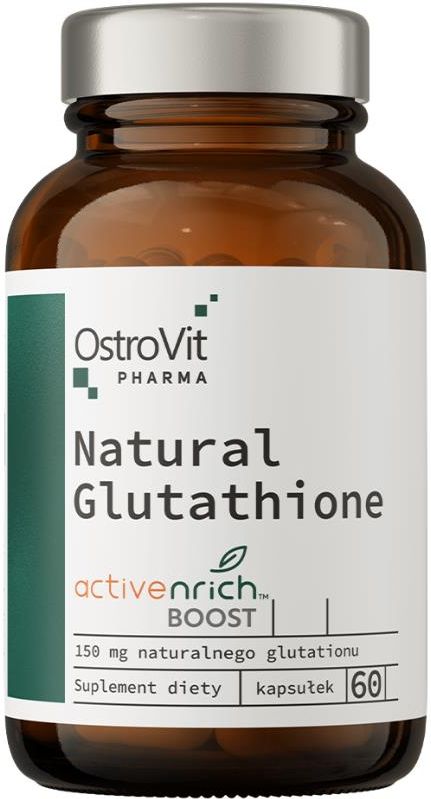 OstroVit Pharma Naturalny Glutation z drożdży 60 kapsułek Suplement diety OstroVit Pharma Naturalny Glutation ⭐️ to wysokiej jakości suplement diety, który stanowi źródło naturalnego glutationu pochodzącego z drożdży. To preparat z elitarnej linii OstroVit Pharma, dostępny w postaci łatwych do połknięcia kapsułek. To produkt stworzony z myślą o świadomych konsumentach, którym zależy na uzupełnieniu codziennej diety w cenny związek. Źródło naturalnego glutationu - jedna porcja suplementu diety dostarcza do organizmu 150 mg glutationu z drożdży. 1 porcja = 2 kapsułki. Wydajność - jedno opakowanie produktu zawiera 30 porcji preparatu, co wystarczy na miesiąc regularnej suplementacji. Wygodna forma - preparat dostępny w postaci łatwych do połknięcia kapsułek zapewnia bezproblemową podaż suplementu diety. Masa netto produktu: 35 g Ilość porcji w opakowaniu: 30 Wielkość porcji: 2 kapsułki Składniki aktywne w 1 porcji Naturalny glutation 150 mg Składniki: Naturalny glutation z drożdzy (Saccharomyces cerevisiae), substancja wypełniająca: hydroksypropylometyloceluloza. Produkt może zawierać mleko (łącznie z laktozą), soję, orzeszki ziemne, inne orzechy, nasiona sezamu, zboża zawierające gluten, jaja, skorupiaki, ryby. Jak spożywać Glutation Spożywać 1 porcję (2 kapsułki) dziennie w trakcie posiłku. Produkt przeznaczony dla osób dorosłych. Nie przekraczać zalecanej dziennej porcji do spożycia. Suplement diety nie może być stosowany jako substytut (zamiennik) zróżnicowanej diety. Zalecany jest zrównoważony sposób żywienia i zdrowy tryb życia. Nie spożywać w przypadku uczulenia na którykolwiek ze składników produktu. Produkt nie powinien być stosowany przez dzieci, kobiety w ciąży i matki karmiące. Przechowywać w sposób niedostępny dla małych dzieci. Przechowywać w temperaturze 15-25°C, w zamkniętym opakowaniu, w suchym miejscu. Chronić przed bezpośrednim działaniem promieni słonecznych. OstroVit Pharma Naturalny Glutation - wartościowe źródło cennego składnika L-glutation - organiczny związek chemiczny, który naturalnie występuje w komórkach ludzkiego organizmu, a głównym miejscem jego syntezy jest wątroba. To tripeptyd, składający się z trzech aminokwasów białkowych - kwasu L-glutaminowego, L-cysteiny oraz L-glicyny. Poziom glutationu w ludzkim organizmie ulega zmniejszeniu wraz z wiekiem, a także pod wpływem czynników, takich jak stres, zanieczyszczenia czy infekcje, dlatego też dobrym rozwiązaniem może okazać się stosowanie suplementów diety zawierających wartościowy związek.