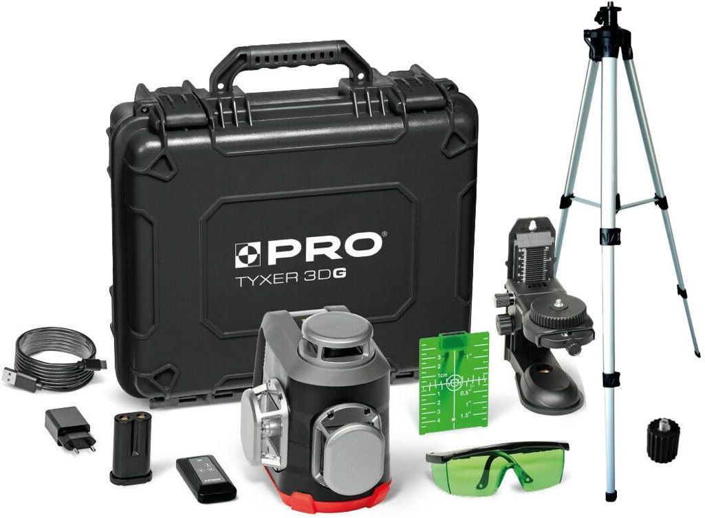 Pro Laser Tyxer 3Dg Zestaw Plus Wieloliniowy Krzyżowy 3X360° - Zielona Wiązka + Statyw Suraż