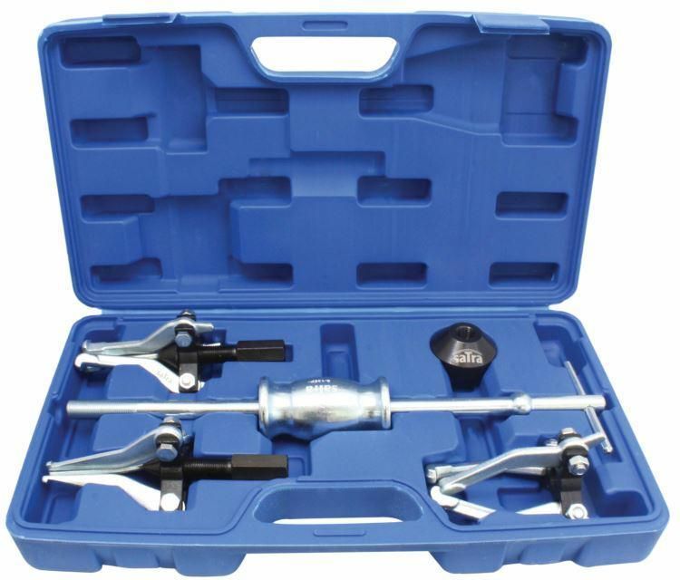Uniwersalny ściągacz marki SATRA z młotkiem bezwładnościowym przystosowany m.in. do kół zębatych, łożysk kulkowych / igiełkowych, tulei, uszczelniaczy typu simering i o-ring - wewnętrznych i zewnętrznych. Odpowiednia konstrukcja wykonana ze stali hartowanej oraz siła młotka umożliwia bezproblemowy demontaż ciasno osadzonych łożysk. Zakres pracy ściągacza zew. 40-80mm oraz wew. 50-150mm sprawia, że zastosowanie jego jest bardzo szerokie. Zestaw: Młotek bezwładnościowy, Ściągacze 3 ramienne, Nakrętka rozpierająca