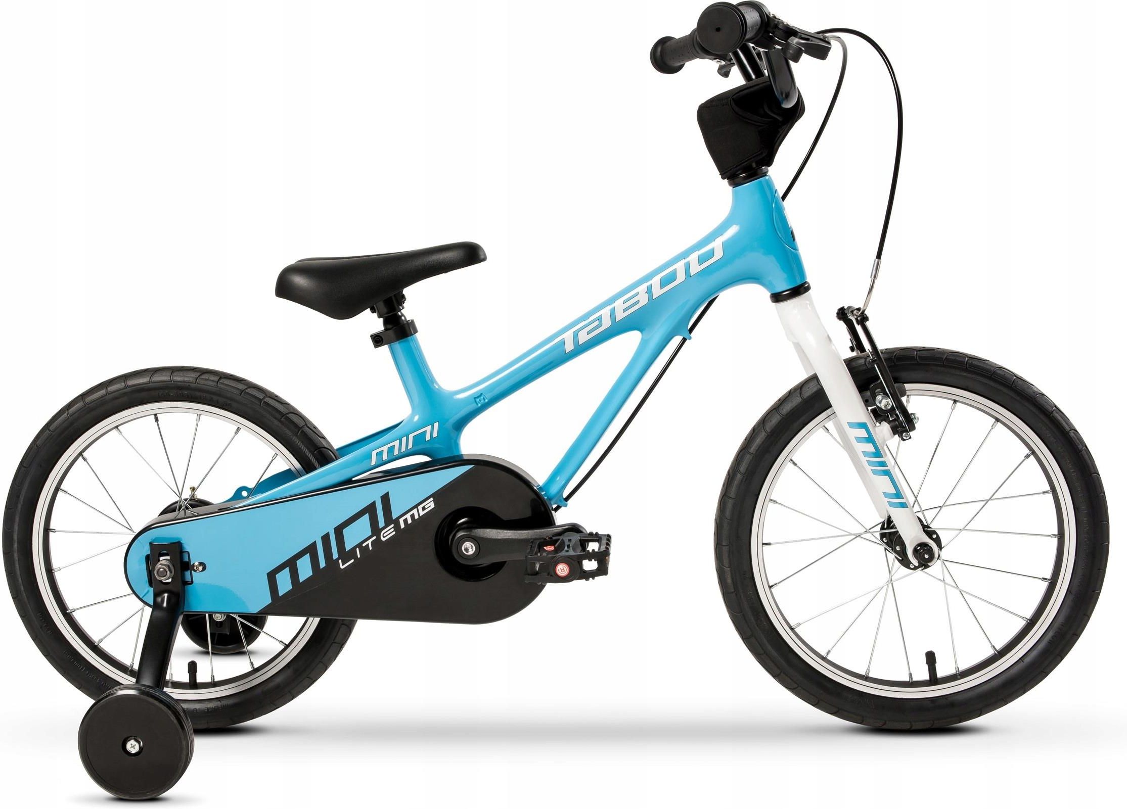 ROWER DZIECIĘCY ROWEREK 18 cali TABOU MINI LITE MAGNEZOWY BARDZO LEKKI 7 kg TAB24-7550 przedsprzedaż TABOU to producent rowerów dla wszystkich grup wiekowych, zarówno dla początkujących, jak i zaawansowanych riderów. Design ram powstaje w studio projektowym w Polsce, bo ideą TABOU jest, że coś, co dobrze jeździ, musi też dobrze wyglądać. Kupując TABOU wspieracie polską markę, która aktywnie angażuje się w propagowanie zdrowego stylu życia. !!!! NAJLŻEJSZY ROWER NA RYNKU !!!! NAJLŻEJSZY ROWER NA RYNKU !!!! Rower dziecięcy TABOU MINI LITE MAGNEZOWY 18 cali niebiesko-biały MINI LITE to NAJLŻEJSZY NA RYNKU rowerek przeznaczony dla najmłodszych dzieci, uczących się samodzielnej jazdy na jednośladzie. Doskonały wybór po rowerku biegowym. Zaprojektowany i dostosowany w całości do potrzeb dziecka – od MAGNEZOWEJ konstrukcji ramy, po wielkości i rodzaje komponentów. ➡️ MINI to model występujący w rozmiarze kół: 14/16/18”, stąd możliwość doboru właściwego rowerka dla dzieci w wieku 2-7 lat. ✅ NAJWYŻSZEJ JAKOŚCI KOMPONENTY✅ Zastosowane dwa rodzaje hamulców: tył bębnowy/taśmowy oraz przód v-brake aluminiowy obsługiwane dźwigniami umieszczonymi na kierownicy, pozwolą dziecku na sprawne zatrzymanie w każdych warunkach. ➡️ Specyfikacja: Rama: ze STOPU MAGNEZU, bardzo lekka Widelec przedni: aluminiowy Obręcze kół: lakierowane 18 cali aluminiowe Opony: 18 cali pompowane Kierownica aluminiowa regulowana Wspornik kierownicy: aluminiowy ahead Wspornik siodła: aluminiowy Mechanizm Korbowy: aluminiowy Piasty przód/tył: aluminiowe Środek suportu: cartridge Hamulec przód: v-brake aluminiowy Hamulec tył: bębnowy/taśmowy Dźwignie hamulca: standardowa plastikowa Pedały: plastikowe z odblaskami Chwyty kierownicy: antypoślizgowe z antyuczuleniowego tworzywa Siodło: profilowane, eco skóra Odblaski: przód, tył, koła, pedała Regulowane, demontowalne kółka boczne Waga: 7 kg(bez kółek) ➡️ Komfort i bezpieczeństwo ✅ KIEROWNICA aluminiowa regulowana: wysokość oraz kąt nachylenia ✅ Bardzo lekka MAGNEZOWA rama z obniżoną górną rurą, ułatwia wsiadanie i zsiadanie z rowerka. ✅ Geometria ramy pozwala przyjąć dziecku wyprostowaną pozycję, zapewniając wygodę, ale także duże bezpieczeństwo, widzi ono bowiem doskonale drogę przed sobą. ➡️ Najwyższa jakość każdego elementu ✅ PEŁNA OSŁONA ŁAŃCUCHA - zabezpiecza ewentualne wkręcenie czegokolwiek w układ napędowy łańcucha i zębatki ✅ PEDAŁA - wykonane ze specjalnego plastiku z wypustkami pozwalają pewnie i bez poślizgu pedałować ✅ SIODEŁKO - specjalnie wyprofilowane z myślą o jak najwyższej wygodzie i komforcie jazdy ✅ KÓŁKA BOCZNE - zabezpieczą dziecko przed upadkiem podczas nauki jazdy ✅ Aluminiowy WIDELEC ✅ Główne zalety: Rowerek wyposażyliśmy w akcesoria takie jak: Regulowane z możliwością demontażu kółka boczne Osłona łańcucha Dzięki swojej budowie z stopu MAGNEZU oraz ALUMUNIUM rower jest BARDZO LEKKI, bezpieczny, a także praktyczny.