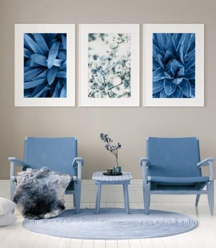 Galeria plakatów przedstawiająca rośliny w odcieniu niebieskim - kwiaty i liście. W naszej galerii plakatów "Niebieskie kwiaty" umieściliśmy następujące obrazy, od lewej: Plakat “Niebieskie liście” w wym. 70 cm x 100 cm Plakat “Niebieskie kwiaty gipsówki” w wym. 70 cm x 100 cm Plakat “Niebieski kwiat:” w wym. 70 cm x 100 cm Do jakiego wnętrza pasuje zestaw niebieskich kwiatów w formie plakatów? Często w komunikacji z Wami pada pytanie, czy ta galeria plakatów będzie pasowała do mojego wnętrza? Pamiętajcie, że plakaty i inne dodatki odzwierciedlają nasz charakter. Zatem, jeśli podoba się Tobie galeria plakatów z niebieskimi kwiatami, to tak, będzie to "ta" odpowiednia :) Drugi aspekt, który należy wziąć pod uwagę to kolorystyka ścian. Zestaw plakatów "Niebieskie kwiaty" będzie pasował do ścian niebieskich w zimnej tonacji. Inne barwy wnętrz, które będą współgrać z kompozycją plakatów to: beże, brązy, pomarańcze, a nawet żółcie. Do plakatów nie są dołączone ramki.