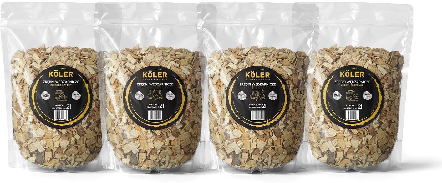 Jeśli cenisz wyjątkowy smak i zapach domowego wędzenia, zestaw zrębek KOLER Premium będzie idealnym wyborem. To starannie dobrana kompozycja zrębek, które nadadzą Twoim potrawom niepowtarzalny charakter – od delikatnych nut owocowych po głęboki, dymny aromat beczek po alkoholu. W zestawie znajdziesz: Zrębki wędzarnicze z beczek po Whisky 2l, Zrębki wędzarnicze z beczek po Koniaku 2l, Zrębki wędzarnicze Jabłoń 2l, Zrębki wędzarnicze BUK-OLCHA 2l, Zestaw KOLER Premium to doskonały sposób, by urozmaicić smak swoich dań i odkrywać nowe aromaty wędzenia. Idealny zarówno dla pasjonatów domowych wyrobów, jak i tych, którzy lubią eksperymentować w kuchni.