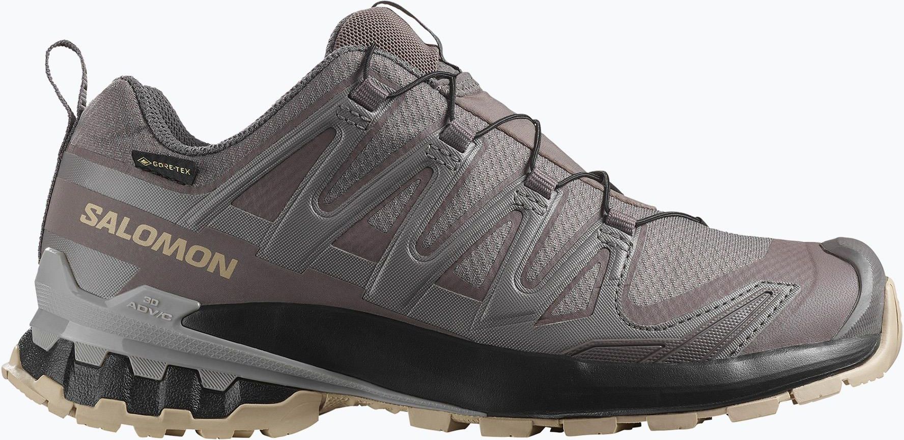 Buty trailowe damskie Salomon Xa Pro 3D V9 GTX - kitten/black/gull wykorzystuje tekstylną siateczkę w cholewce, która oferuje dobrą wentylację. Wzmocnienia z tworzywa w rejonie palców dodatkowo zabezpieczają stopę przed urazami. Rama podeszwy 3D Advanced Chassis zapewnia stabilność w trudnym …