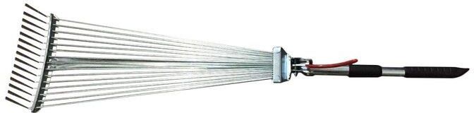 Połączenie miotły z grabiami. Zastosowanie do grabienia liści, skoszonej trawy lub innych odpadów. Produkt składany, dzięki temu nie zabierają dużo miejsca.Wymiary złożonych miotłograbii 80x20x4 cm, Wymiary rozłożonych miotłograbii 128x52x4 cm