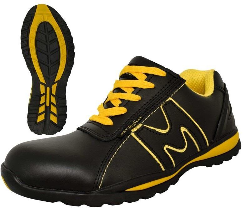 Półbuty Bsport SB Półbuty ochronne o sportowym i nowoczesnym charakterze. Wykonane zostały ze skóry bydlęcej o gładkiej fakturze w kolorze czarnym, wzbogaconej o stylowe żółte aplikacje, które nadają dynamicznego wyglądu. Stalowy podnosek zapewnia skuteczną ochronę palców przed urazami. Miękki język i kołnierz zwiększają komfort noszenia, a usztywniona pięta zapewnia lepszą stabilizację stopy. Podeszwa wykonana z trwałej, dwukolorowej gumy charakteryzuje się podwyższonym współczynnikiem tarcia, co ogranicza ryzyko poślizgu na różnych nawierzchniach. Dodatkowo jest odporna na olej napędowy, co czyni obuwie niezawodnym rozwiązaniem w wymagającym środowisku pracy.