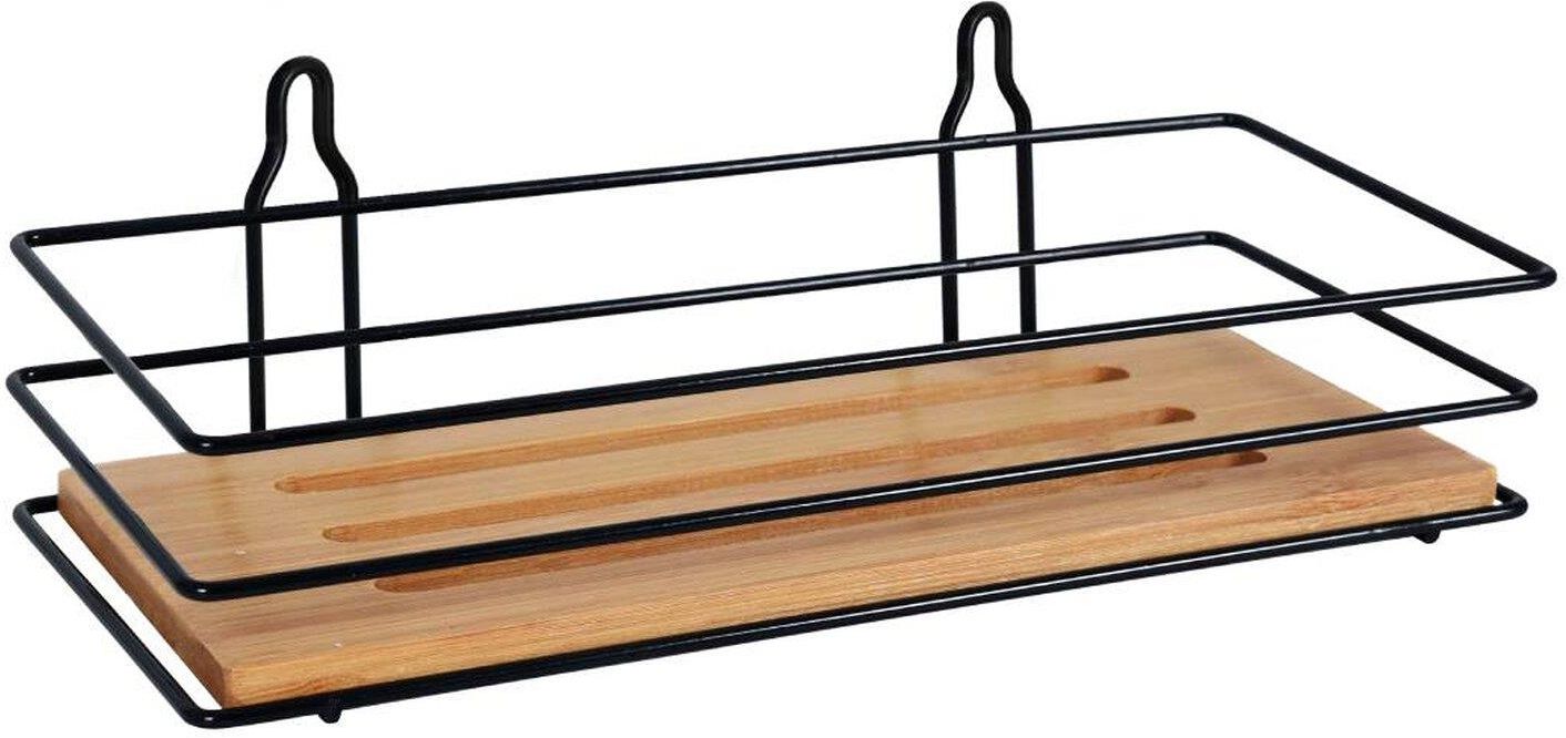 Półka pojedyncza z serii UMBRA marki Bisk Półki z serii UMBRA dostępne są w różnych kształtach i wysokościach.Czarna stal wraz z bambusową półką będą doskonałym i praktycznym uzupełnieniem pomieszczeń w stylu nowoczesnym lub tradycyjnym.