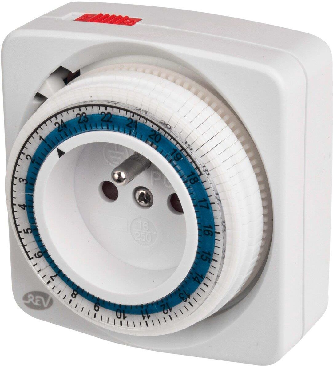 Programator czasowy mechaniczny, dzienny / 24h / 15minutowy, kompaktowy Dane techniczne: maksymalne obciążenie: 16A / 3600W napięcie zasilające: 220-250V AC częstotliwość napięcia: 50 Hz stopień ochrony: IP20 (do użytku wewnętrznego) obsługa ręczna: ON/OFF kolor: biały Zastosowanie: Programator mechaniczny 24-godzinny do sterowania urządzeniami elektrycznymi z możliwością ustawienia czasu z dokładnością do 15minut ( wciskamy/wyciskamy 1-"ząbek" na zegarze). Prosty w obsłudze, niezawodny wraz z możliwością programowania z dokładnością do 15 minut i niski koszt zakupu to zdecydowanie jego atuty. Wciskając / wyciągając poszczególne "ząbki" na zegarze powodujemy dopływ energii elektrycznej do sterowanego urządzenia, zakres sterowania to 15 minut.