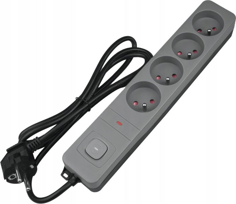 Listwa przedłużacz sieciowy z włącznikiem 4 gniazda 1,5m czarno-szary Listwa została stworzona by zabezpieczyć sprzęt elektroniczny i elektryczny min: komputery, telewizory, drukarki, sprzęt HI-FI. Listwa posiada główny wyłącznik zasilania, więc gdy nie korzystamy z danego urządzenia możemy go całkowicie odłączyć co pomaga zaoszczędzić nasze pieniądze. Specyfikacja techniczna - Typ: 4 gniazda - Kolor: BIAŁ0-SZARY - Długość kabla: 1,5m - Napięcie znamionowe: AC, 230V, 50Hz - Maksymalne obciążenie: 2300W - Prąd znamionowy: 10A - Przewód: 3G1 mm2 - Włącznik on/off podświetlany Właściwości - Zabezpieczenie przed dziećmi - Sygnalizacja pracy - Oszczędność energii - Filtr wysokich częstotliwości - Zabezpieczenie przed przeciążeniem Zastosowanie TV, telefon, komputer, drukarka, HI-FI, DVD, VHS Sprawdzająca się w każdych warunkach od warsztatów samochodowych poprzez biura aż po zastosowanie w domach. Duża ilość gniazd pozwoli podłączyć wiele urządzeń bez konieczności rozłączania innych. TOWAR NAJWYŻSZEJ JAKOŚCI ! 100% ZADOWOLENIA ! SATYSFAKCJA GWARANTOWANA !