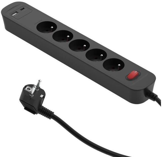 Przedłużacze do szybkiego ładowania z przełącznikiem i 2 portami USB (1USB-A + 1 USB-C) PD20W z ładowarką GaN Dane techniczne: technologia GaN to rozwiązanie stosowane w ładowarkach, które umożliwia szybsze i wydajniejsze ładowanie urządzeń elektronicznych zastosowany azotek galu (GaN) charakteryzuje się wysoką przewodnością cieplną i wysoką ruchliwością elektronów, co przekłada się na wyższą wydajność i żywotność ładowarek gniazda: 5 x 16 A dwubiegunowy przełącznik Rock On/Off wyjście USB: 5,0 V DC/3,0 A, maks. 15,0 W; 9 V DC/2,22 A maks. 20,0 W; 12 V DC/1,67 A maks. 20,0 W USB-A+USB-C: 5,0 V DC 3,0 A maks. 15,0 W obsługa wielu protokołów szybkiego ładowania: PD3.0, PD2.0, QC3.0, QC2.0, FCP, SCP, AFC, APPLE2.1/BC1.2 osłony styków materiał obudowy: ognioodporny PP napięcie: 230 V ~ 50 Hz Maks.: 3680 W kabel 1,4 m H05VV-F 3G1,0 mm² kolor: grafitowy
