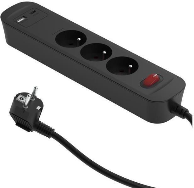 Przedłużacze do szybkiego ładowania z przełącznikiem i 2 portami USB (1USB-A + 1 USB-C) PD20W z ładowarką GaN Dane techniczne: technologia GaN to rozwiązanie stosowane w ładowarkach, które umożliwia szybsze i wydajniejsze ładowanie urządzeń elektronicznych zastosowany azotek galu (GaN) charakteryzuje się wysoką przewodnością cieplną i wysoką ruchliwością elektronów, co przekłada się na wyższą wydajność i żywotność ładowarek gniazda: 3 x 16 A dwubiegunowy przełącznik Rock On/Off wyjście USB: 5,0 V DC/3,0 A, maks. 15,0 W; 9 V DC/2,22 A maks. 20,0 W; 12 V DC/1,67 A maks. 20,0 W USB-A+USB-C: 5,0 V DC 3,0 A maks. 15,0 W obsługa wielu protokołów szybkiego ładowania: PD3.0, PD2.0, QC3.0, QC2.0, FCP, SCP, AFC, APPLE2.1/BC1.2 osłony styków materiał obudowy: ognioodporny PP napięcie: 230 V ~ 50 Hz Maks.: 3680 W kabel 1,4 m H05VV-F 3G1,0 mm² kolor: grafitowy