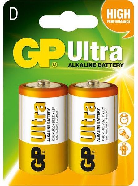 Bateria alkaliczna GP Ultra LR20/D to źródło zasilania wielu urządzeń przenośnych o wysokim poborze mocy, m.in. radioodbiorników, sterowanych samochodów. Moc baterii wynosi 1,5 V. W odróżnieniu od klasycznych, węglowo-cynkowych, zamiast elektrolitu zastosowano w niej roztwory alkaliczne, dzięki czemu charakteryzuje się nawet czterokrotnie dłuższym działaniem. Baterie są wpełni pozbawione rtęci i kadmu.