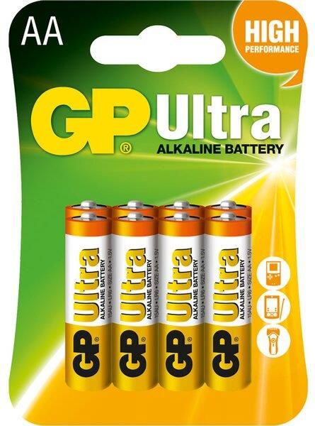 Bateria alkaliczna GP Ultra LR6/AA to źródło zasilania wielu urządzeń przenośnych o wysokim poborze mocy, m.in. radioodbiorników, sterowanych samochodów. Moc baterii wynosi 1,5 V. W odróżnieniu od klasycznych, węglowo-cynkowych, zamiast elektrolitu zastosowano w niej roztwory alkaliczne, dzięki czemu charakteryzuje się nawet czterokrotnie dłuższym działaniem. Baterie są wpełni pozbawione rtęci i kadmu.