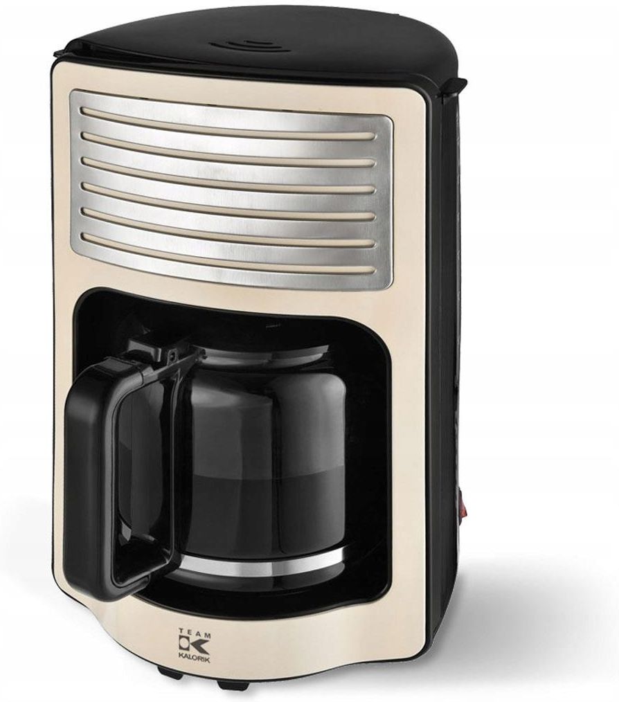 Ekspres do kawy retro CM 2500 Wysokiej jakości szklany dzbanek z wyświetlaczem na filiżanki i pojemnością 1,8 litra (maks. 15 filiżanek) i pokrywką do zaparzania Płyta grzejna z powłoką nieprzywierającą Dla fanów nostalgii i ikon stylu! Elegancki ekspres do kawy w stylu retro TKG CM 2500 ma wysokiej jakości front ze stali nierdzewnej z chromowanym akcentem, który nadaje mu niepowtarzalny kultowy wygląd oraz wysokiej jakości szklany dzbanek o pojemności 1,8 litra. Zarówno szklany dzbanek, jak i zbiornik na wodę mają podziałkę na filiżanki, dzięki czemu zawsze ugotujesz odpowiednią ilość kawy. Jeśli trzeba było zaparzyć więcej kawy, dzięki płycie grzewczej utrzymuje ona optymalną temperaturę nawet po długim okresie postoju. Oczywiście ekspres do kawy posiada również funkcję automatycznego wyłączania - więc nawet jeśli zapomnisz o ekspresie w kuchni, nie musisz się martwić. Ten ekspres do kawy jest absolutną koniecznością na każdym stole śniadaniowym, a także wizualnie przycina piękną sylwetkę. Uwaga! Opis tego produktu został przetłumaczony automatycznie. Jeśli możemy poprawić go dzięki Tobie, prosimy o kontakt. Wyposażenie: Pojemność 1,8 litra wysokiej jakości szklany dzbanek z ekspozycją na filiżanki (maks. 15 filiżanek) i pokrywką do zaparzania płyta grzejna z powłoką nieprzywierającą Automatyczne zatrzymanie kapania Zbiornik na wodę z przezroczystym wskaźnikiem poziomu wody Front wykonany z wysokiej jakości stali nierdzewnej z akcentem w wyglądzie chromu Funkcja automatycznego wyłączania wyjmowany uchwyt filtra dla łatwego czyszczenia Podświetlany włącznik/wyłącznik mocne 1000 watów dla wyjątkowo mocnej przyjemności z kawy Dane techniczne: Długość produktu: 221 mm · Ekspresy do kawy - Informacje: szklany dzbanek · Kolor producenta: kremowo-biały · Moc: 1000 W · Pojemność dzbanka: 15 · Szerokość produktu: 218 mm · Waga: 1.96 kg · Wysokość produktu: 335 mm Dostawa obejmuje: Ekspres do kawy, Szklany dzbanek, Instrukcja obsługi