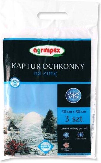 Kaptur ochronny na zimę o wymiarach 50 cm x 80 cm, marki Agrimpex.Włóknina z polipropylenu do osłaniania i zabezpieczania roślin.Chroni sadzonki rośliny przed przymrozkami, dobowymi wahaniami temperatury, porywistym wiatrem, gradobiciem i insektami.Utrzymuje wyższą temperaturę i wilgotność dla roślin, zapewniając optymalne warunki ich równomiernego kiełkowania i wzrostu. Przepuszcza światło i powietrze.Gwarantuje optymalne warunki wegetacji, bez względu na pogodę.Opakowanie zawiera 3 sztuki.