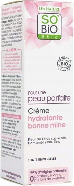 So Bio Perfecting Skin rozświetlający krem nawilżający z kwiatem lotosu i oczarem, 40 ml Rozświetlający krem nawilżający wypełnia skórę, rozświetla cerę i ukrywa niedoskonałości. Uniwersalny odcień wtapia się w skórę dla uzyskania bardziej ujednoliconego kolorytu. Zawiera rozjaśniające pigmenty, które nie osadzają się w zagłębieniach czy zmarszczkach.Składniki: ujednolicający koloryt i antyoksydacyjny kwiat lotosu, organiczny oczar wirginijski, przeciwzmarszczkowy cynk PCA i nawilżający i wypełniający skórę kwas hialuronowy.Linia Perfecting Skin marki SO’BIO etic została stworzona z myślą o zwalczaniu pierwszych oznak starzenia oraz rozświetleniu skóry. Synergia składników aktywnych o właściwościach nawilżających i antyoksydacyjnych.Testowany pod kontrolą dermatologiczną. Nie jest komadogenny.Stosowanie: Nakładać rano na czystą skórę twarzy.Skład: Aqua /Water/Eau, Hamamelis Virginiana (Witch Hazel) Water*, Glycerin, Dicaprylyl Carbonate, Glyceryl Stearate Citrate, Caprylic/Capric Triglyceride, Simmondsia Chinensis (Jojoba) Seed Oil*, Cetearyl Alcohol, Sodium Levulinate, Benzyl Alcohol, Oryza Sativa (Rice) Powder*, Parfum (Fragrance), CI 77019 (Mica), CI 77491 (Iron Oxides), Sodium Benzoate, Sodium Stearoyl Glutamate, Xanthan Gum, Zinc PCA, Sodium Hydroxide, Linalool, Lactic Acid, Sodium Hyaluronate, Limonene, Nelumbo Nucifera Flower Extract*, Citric Acid, Citronellol, Geraniol, Potassium Sorbate, Tocopherol, Citral, Glycine Soja (Soybean) Oil. Pojemność: 40 ml