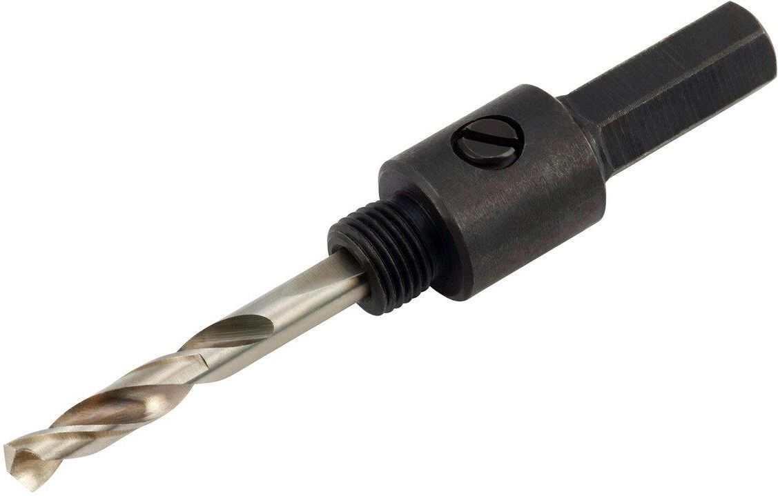 Wiertło prowadzące do koron wiertarskich 19 mm - 29 mm, z trzpieniem sześciokątnym, LUX-TOOLS.Uchwyt do otwornic trepanacyjnych z połączeniem kołkowym i wiertłem, umożliwiającym precyzyjne, punktowe nawiercenie. Przeznaczony do stosowania z wiertarkami udarowymi.