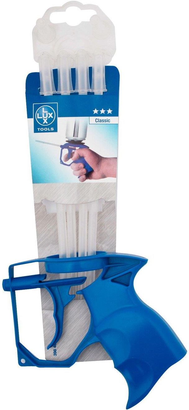 Pistolet do pianki montażowej LUX-TOOLS.Pistolet wykonany z tworzywa sztucznego, przeznaczony jest do czystego i kontrolowanego wypełniania spoin i pustych przestrzeni pianką PU. Pasuje do wszystkich typowych pianek poliuretanowych.