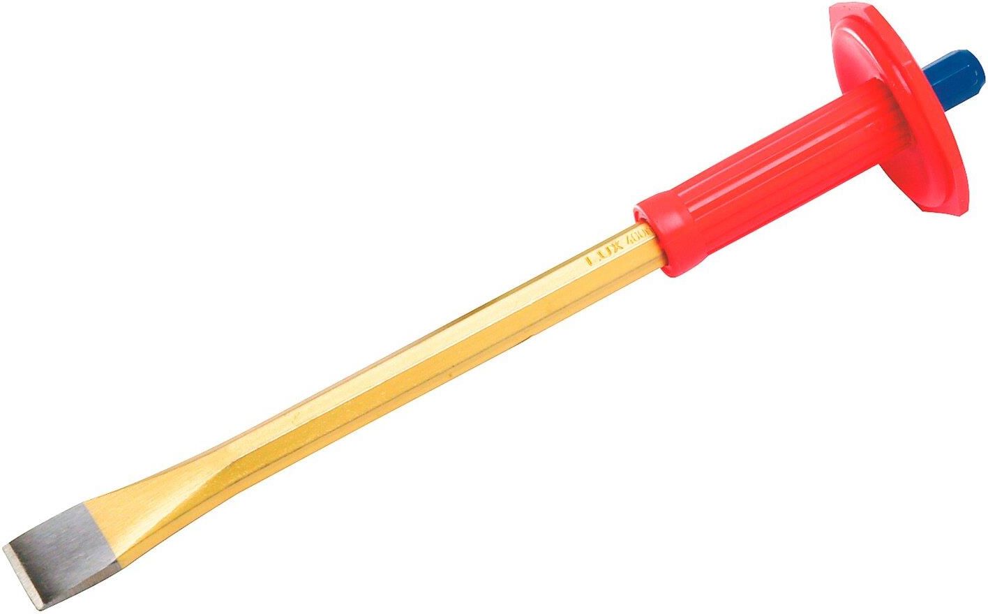 Przecinak z osłoną na ręce LUX-TOOLS idealnie nadaje się do wszelkiego rodzaju prac murarskich. Wykonany ze stali chromowo-wanadowej, wyposażony w specjalne zabezpieczenie rąk przed zranieniem. Długość: 400 mm. Specyfikacja techniczna Rodzaj: Przecinaki szerokość ostrza: 28 mm Waga: 937 g Wysokość: 40,0 cm Szerokość: 8,5 cm Głębokość / Grubość: 8,5 cm