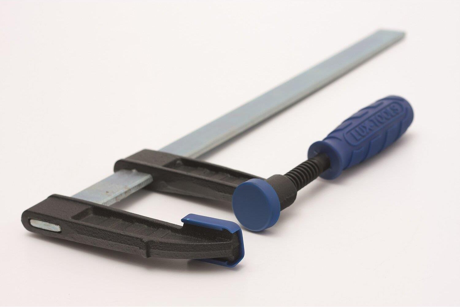 Ścisk stolarski 300 mm x 80 mm, LUX-TOOLS.Umożliwia skuteczne, silne mocowanie materiału podczas obróbki (klejenia, cięcia, wiercenia, spawania itp.). Posiada stalową prowadnicę o zwiększonej sztywności, żeliwne szczęki i stalowy zacisk z gwintem trapezowym, zaopatrzony w wygodny uchwyt z tworzywa sztucznego.Koniec szczęki i krążek dociskowy zabezpieczone są miękkimi nakładkami, chroniącymi obrabiany materiał przed uszkodzeniem.