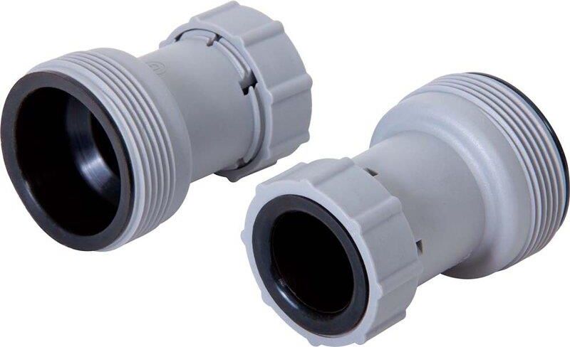 Adaptery do węży wykonane z trwałych, odpornych na korozję materiałów. Adapter łączy węże (średnica 38 mm) z zaworami basenowymi (średnica 32 mm). Są łatwe do zainstalowania. W komplecie 2 sztuki.